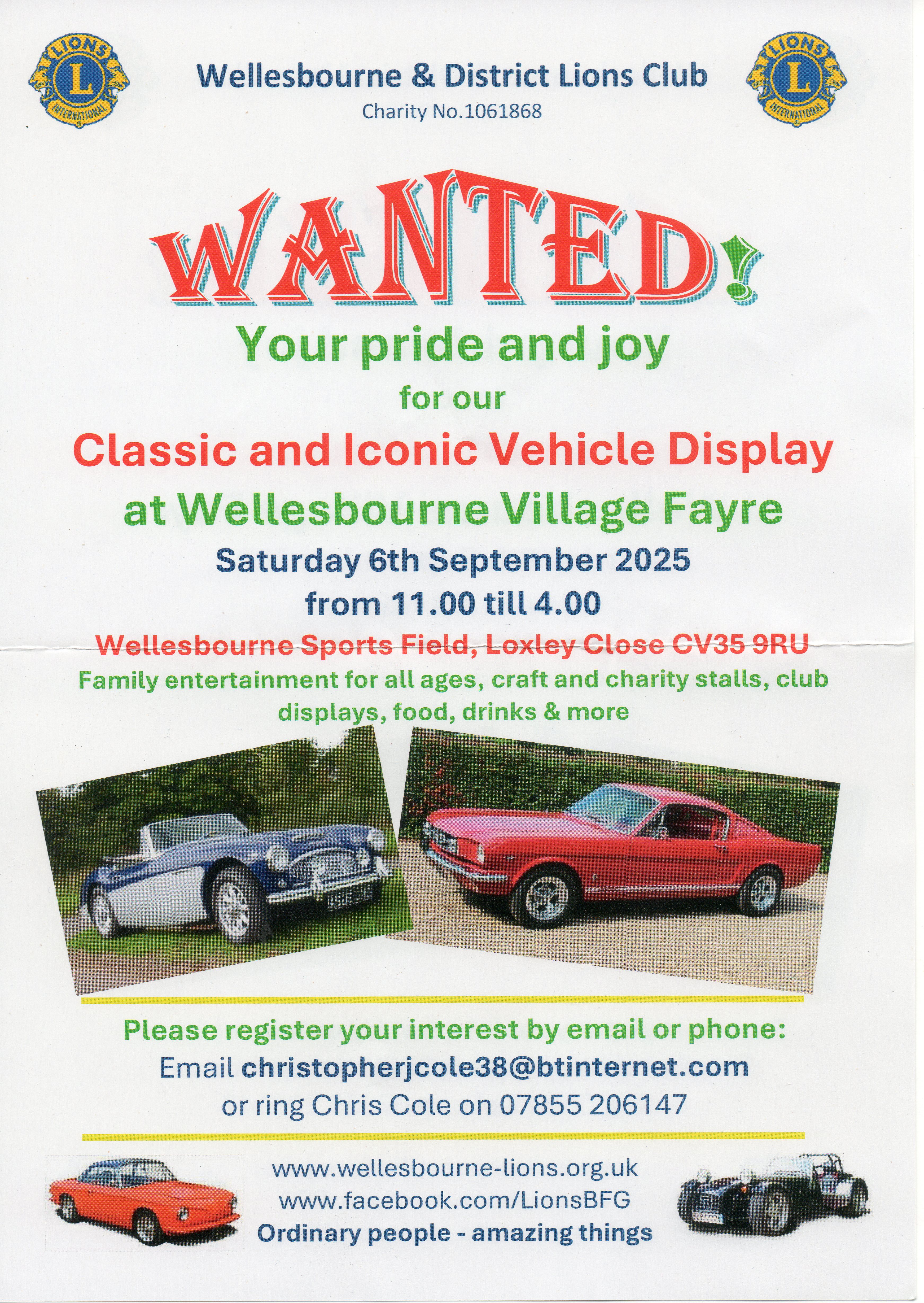 We are looking forward to taking part in the Wellesbourne Community Day on 6th September 2025 at the Wellesbourne Sports Field CV35 9RU.